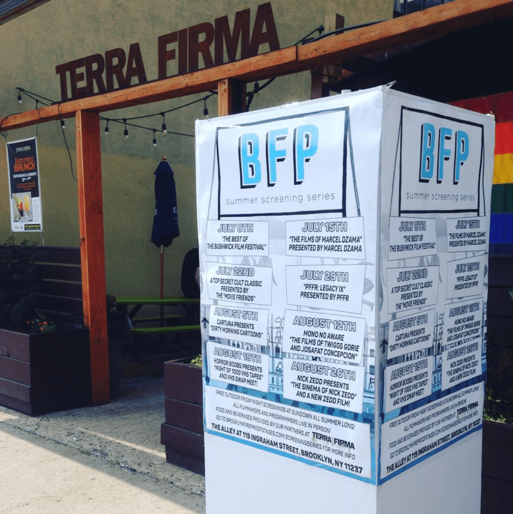 “We purchased this great professional, outdoor theater screen to have a few movie parties, since we have the space. We asked some of the fantastic people we’d worked with about hosting parties, and they all said yes,” said Kenneth Filmer, the series’ programmer and stage manager at BFP. “We then opened it up to some underground cinema programmers, as an overall celebration of the outer limits of New York’s filmmaking and film-viewing community, with a program that includes one of New York’s most celebrated young artists, former Kim’s Video employees, the founder of the cinema of transgression, VHS-fetishizing maniacs, and the guys that make the weirdest stuff on Adult Swim.”